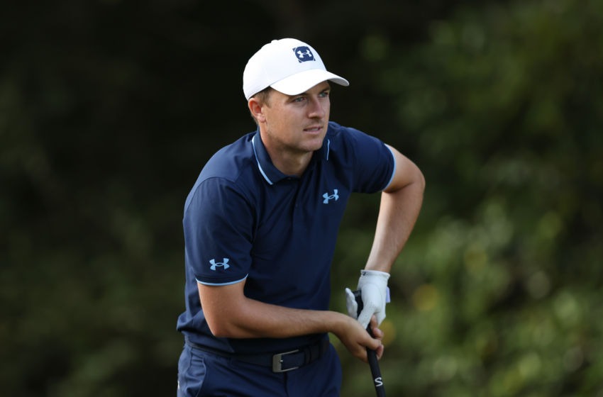 HOUSTON, TEXAS - NOVEMBER 05: Jordan Spieth of the United States plays his shot from the eighth tee during the first round of the Vivint Houston Open at Memorial Park Golf Course on November 05, 2020 in Houston, Texas. (Photo by Carmen Mandato/Getty Images)